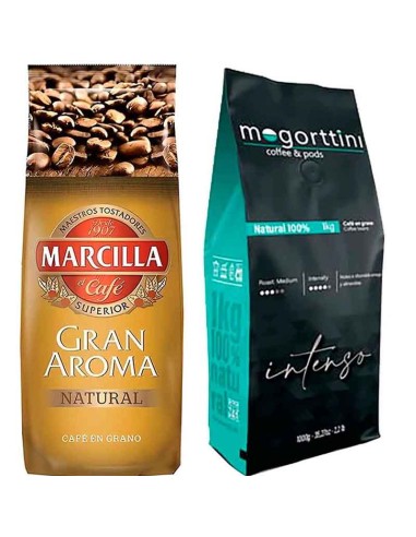 Gran Aroma Natural y Mogorttini Intenso - Lote de 2kg de Café en Grano Premium