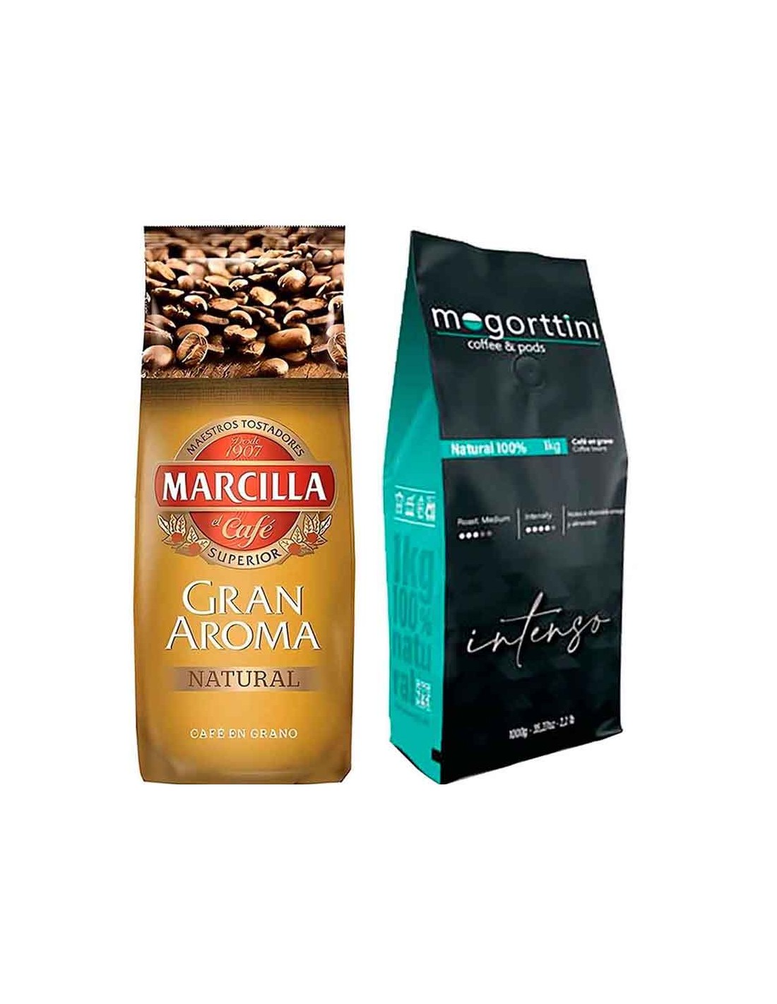 Este lote combina lo mejor de dos mundos: el sabor equilibrado y natural de Marcilla con la intensidad y personalidad de Mogorttini. Disfruta de 2kg de café premium y eleva tu experiencia cafetera al siguiente nivel.