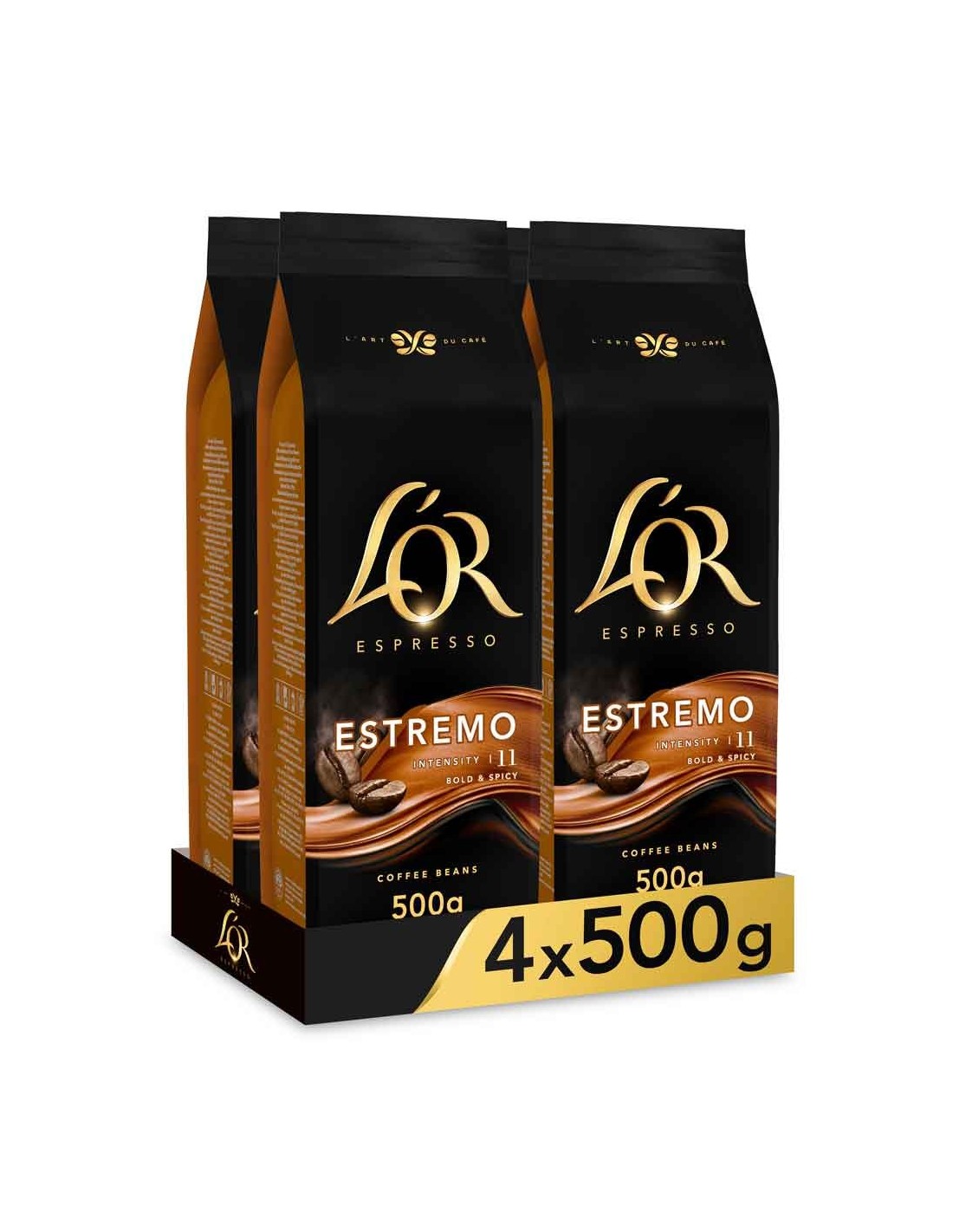 ESTREMO Espresso 4 paquetes de 500 gr. Café en grano L'or INTENSIDAD 11