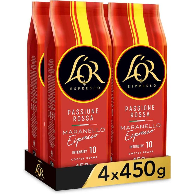 4 paquetes Passione Rossa Maranello Espresso de 450 g. Café en grano L'or