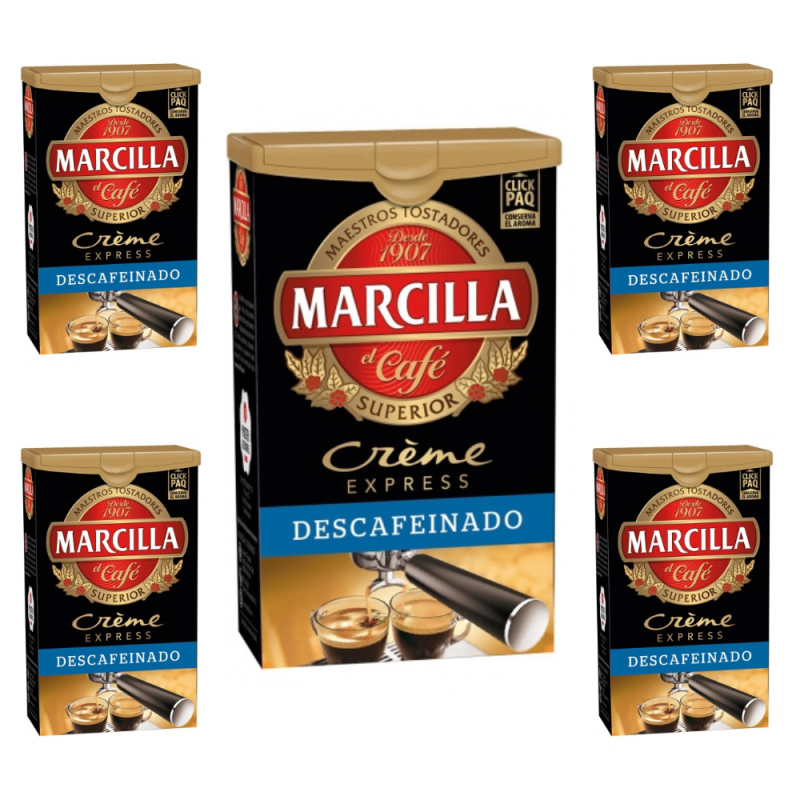 Disfruta del Café Descafeinado con Sabor Intenso: Pack de 5 Marcilla Creme Express Descafeinado Mezcla - 250g