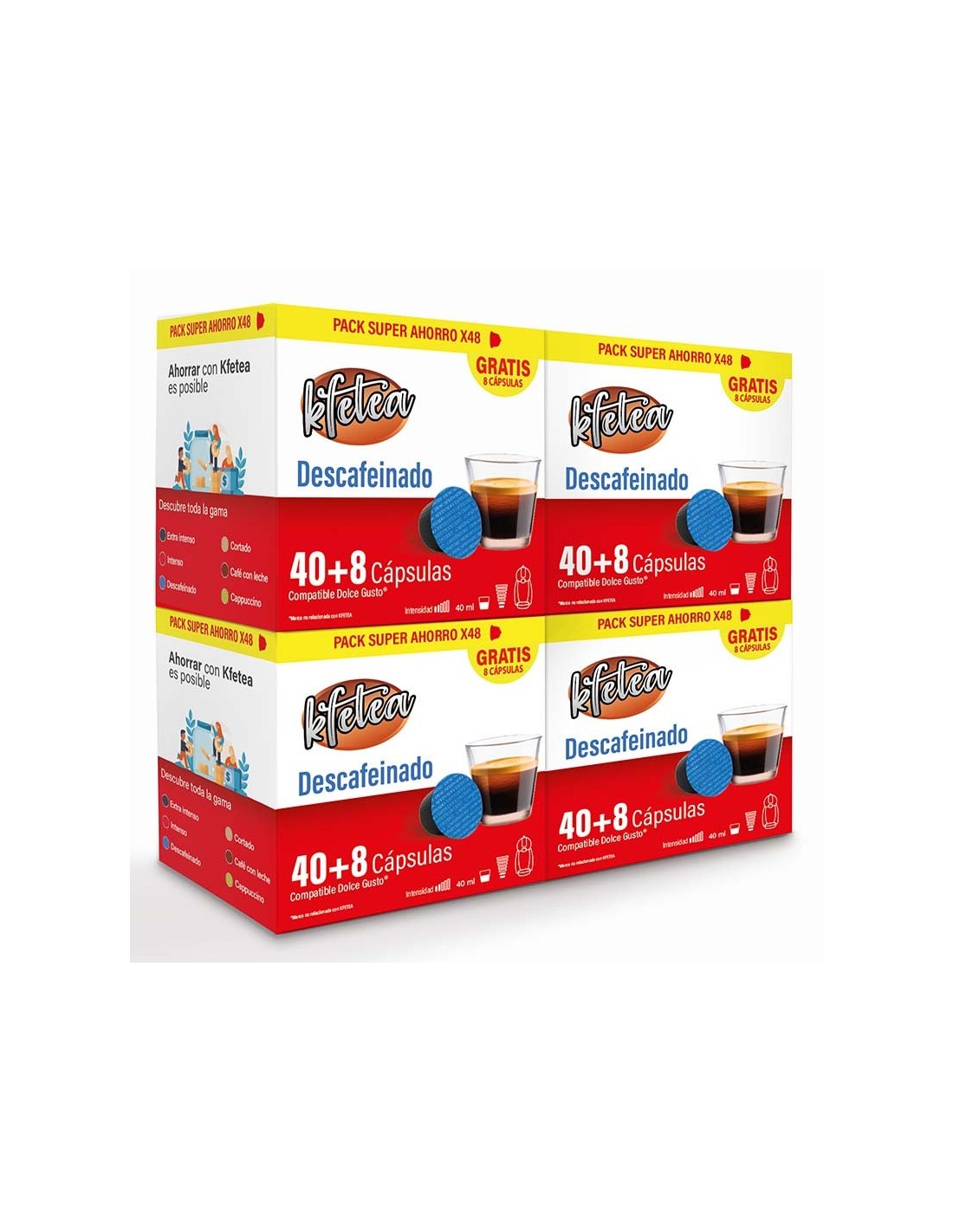 Descafeinado Kfetea 4 cajas de 48 capsulas compatibles Dolce Gusto 8436583660546