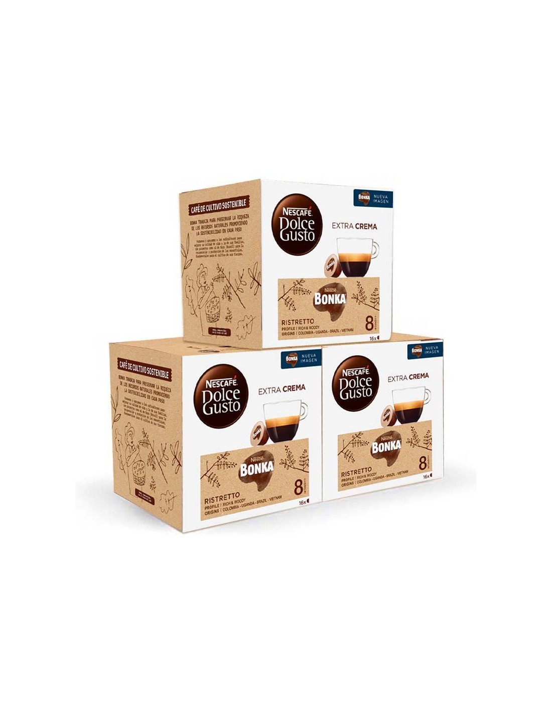El Bonka Ristretto Pack 48 cápsulas Dolce Gusto te ofrece la conveniencia de disfrutar un ristretto perfecto en la comodidad de tu hogar