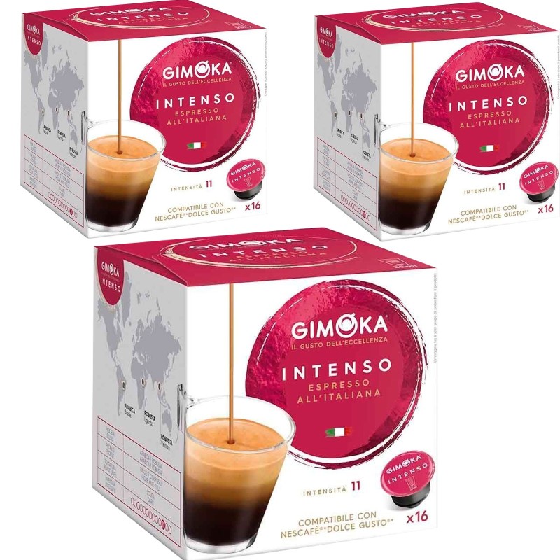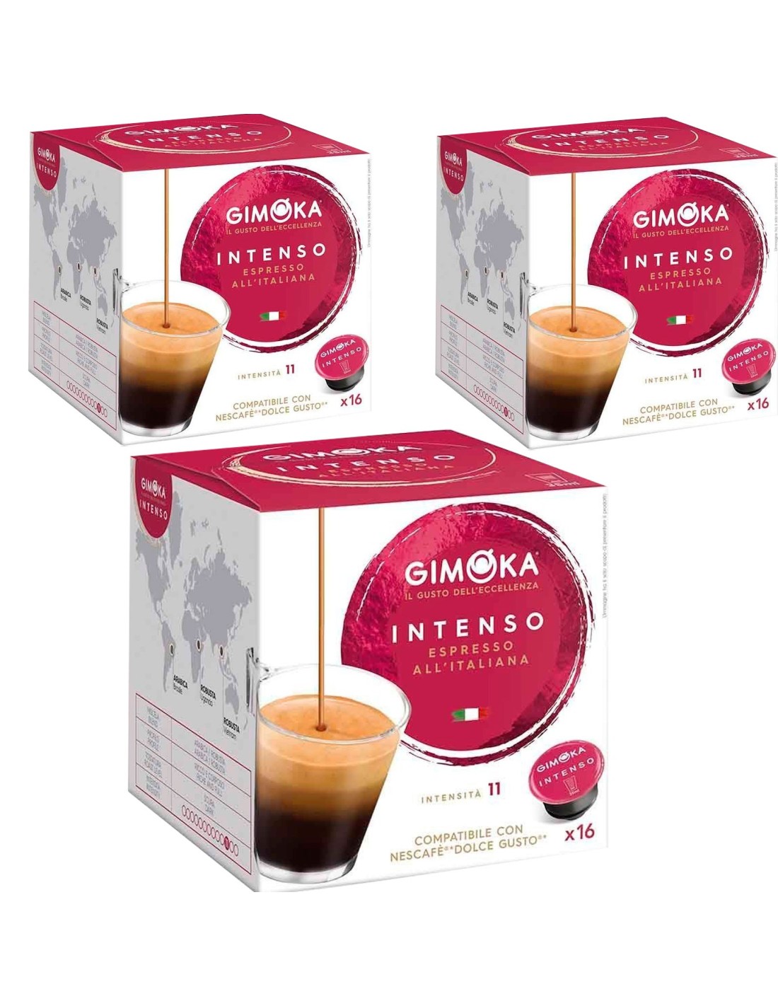 Cada una de nuestras 3 cajas de 16 cápsulas compatibles con Dolce Gusto ha sido cuidadosamente creada para brindarte una experiencia cafetera única. Nuestro café es fruto de una selección meticulosa de los mejores granos de café, tostados con maestría para obtener la intensidad y el aroma cautivador que caracteriza al Espresso Intenso Gimoka.
