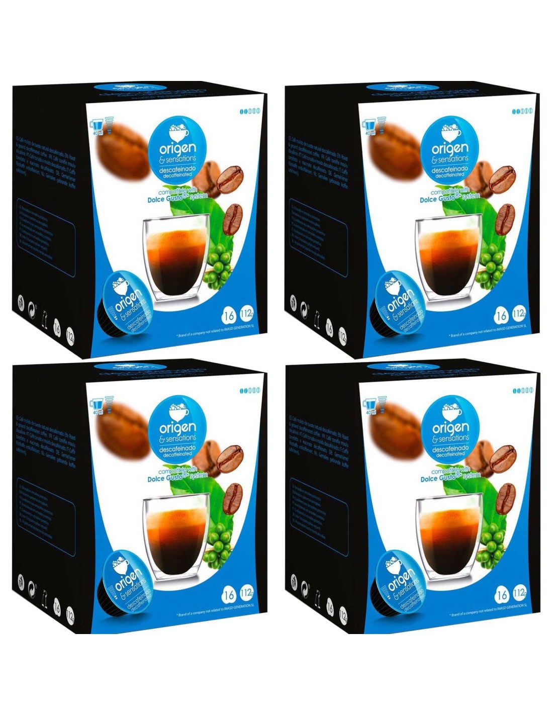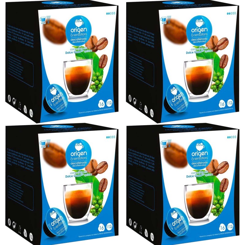 Descafeinado, 4 cajas de 16 cápsulas Origen & Sensations compatibles Dolce Gusto - ¡Sabor sin límites, sin cafeína!