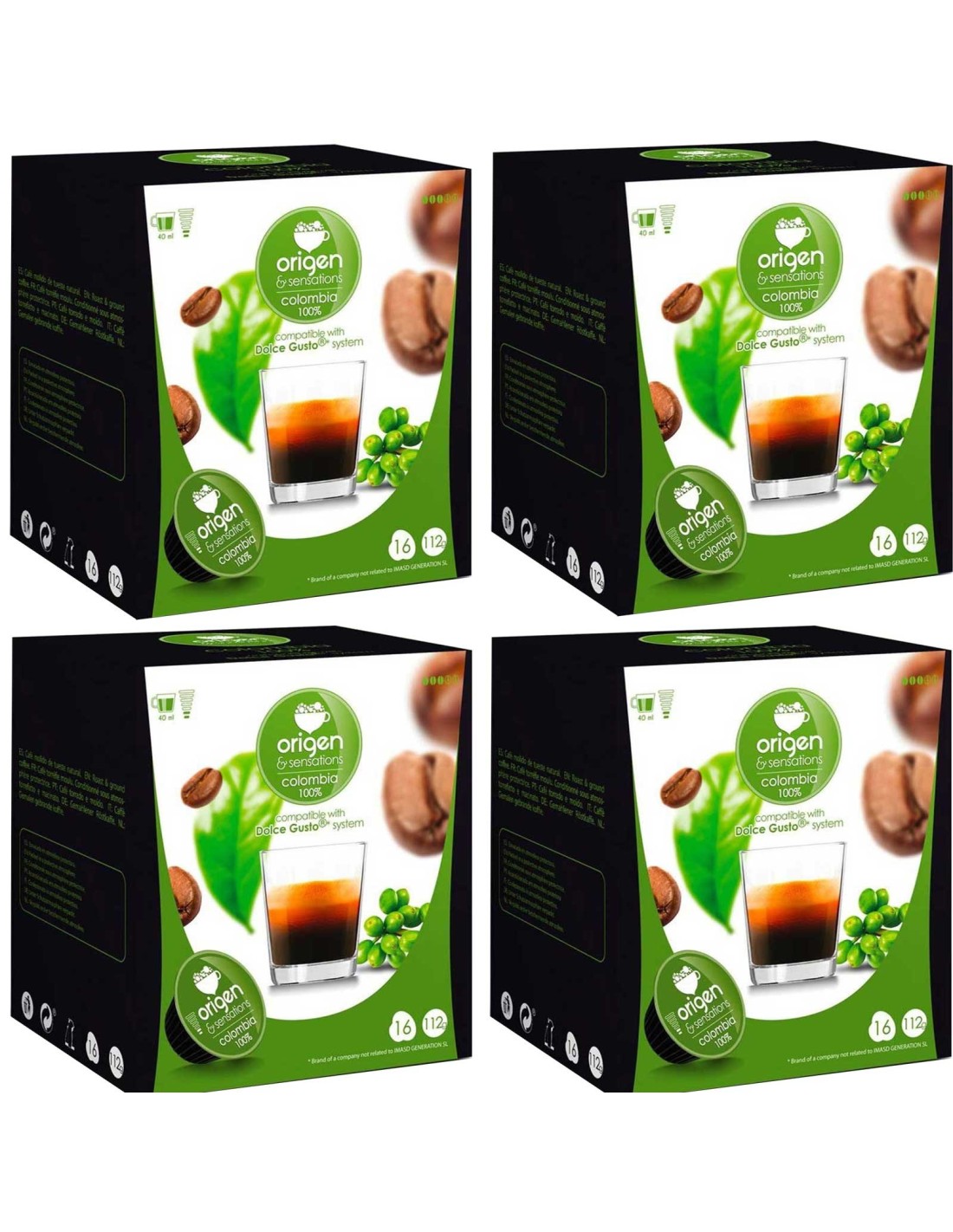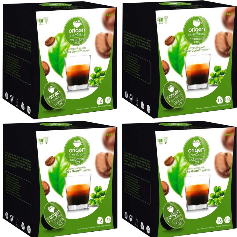 Colombia 100%,4 cajas de 16 cápsulas Origen&Sensations compatibles Dolce Gusto: Disfruta de la riqueza y autenticidad del café colombiano en cada sorbo. Estas cápsulas de café 100% Colombia son ideales para aquellos amantes del café que buscan una experiencia excepcional en su taza.