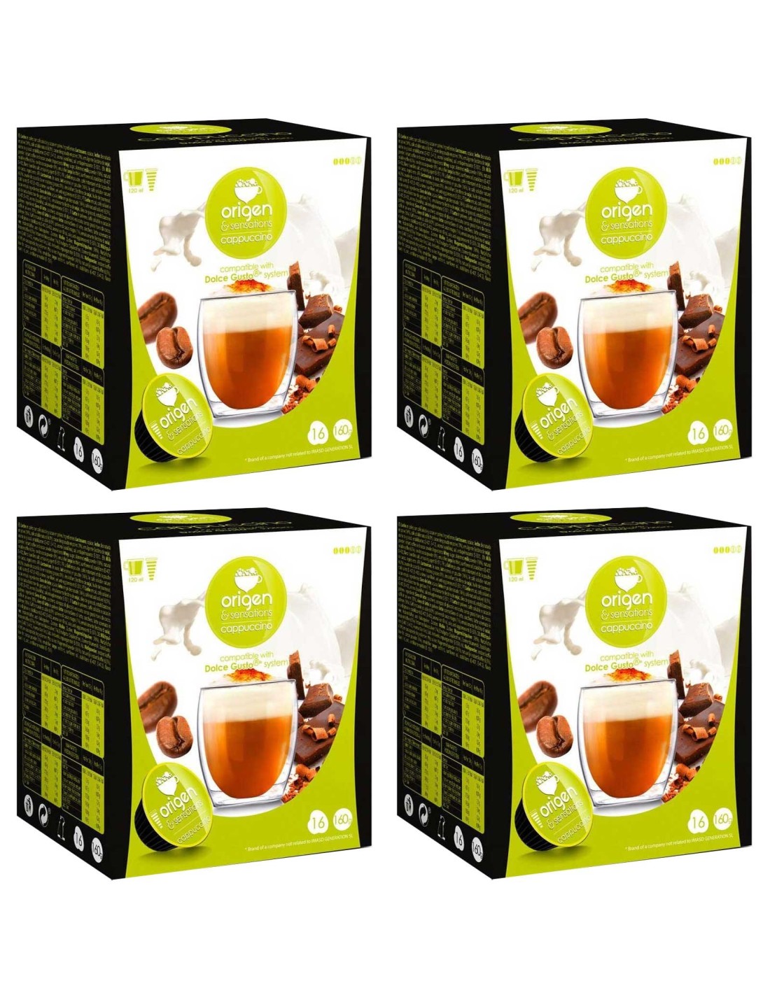 4 cajas deCAPPUCCINO, 16 cápsulas Origen & Sensations compatibles Dolce Gusto 8435336216078