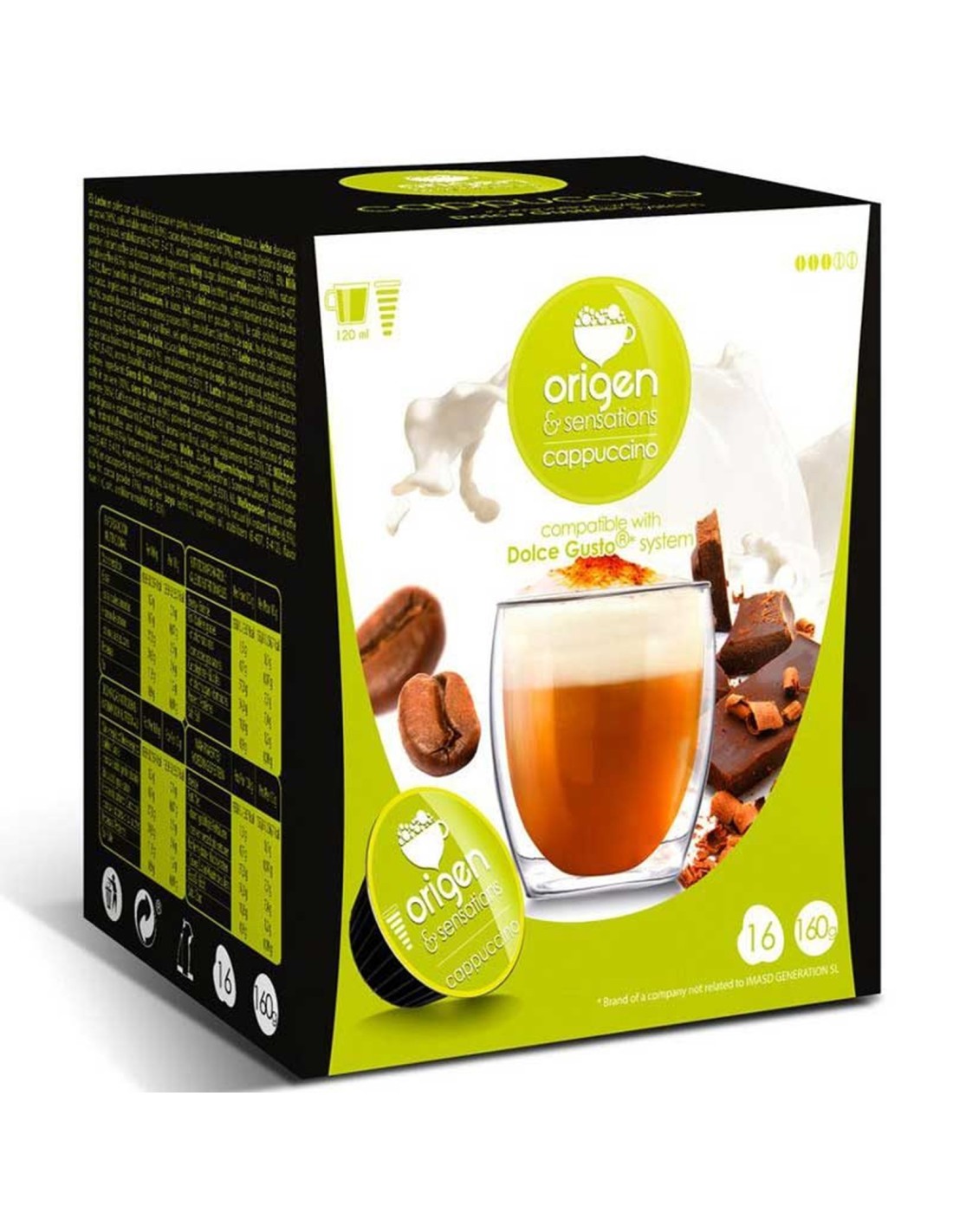 Prueba nuestro Capuccino en formato de 16 cápsulas Origen & Sensations compatibles Dolce Gusto