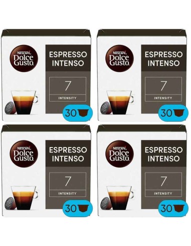 Disfruta del nuevo Espresso Intenso de Dolce Gusto en formato ahorro: 4 packs de 30 cápsulas. Un café cremoso y con carácter, de intensidad 7, con notas a frutos rojos y nueces tostadas. Ideal para los que buscan un espresso con cuerpo y aroma envolvente.