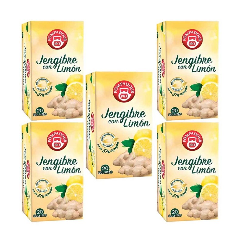 5 cajas de Jengibre con Limón Pompadour 20 infusiones 8412900401184