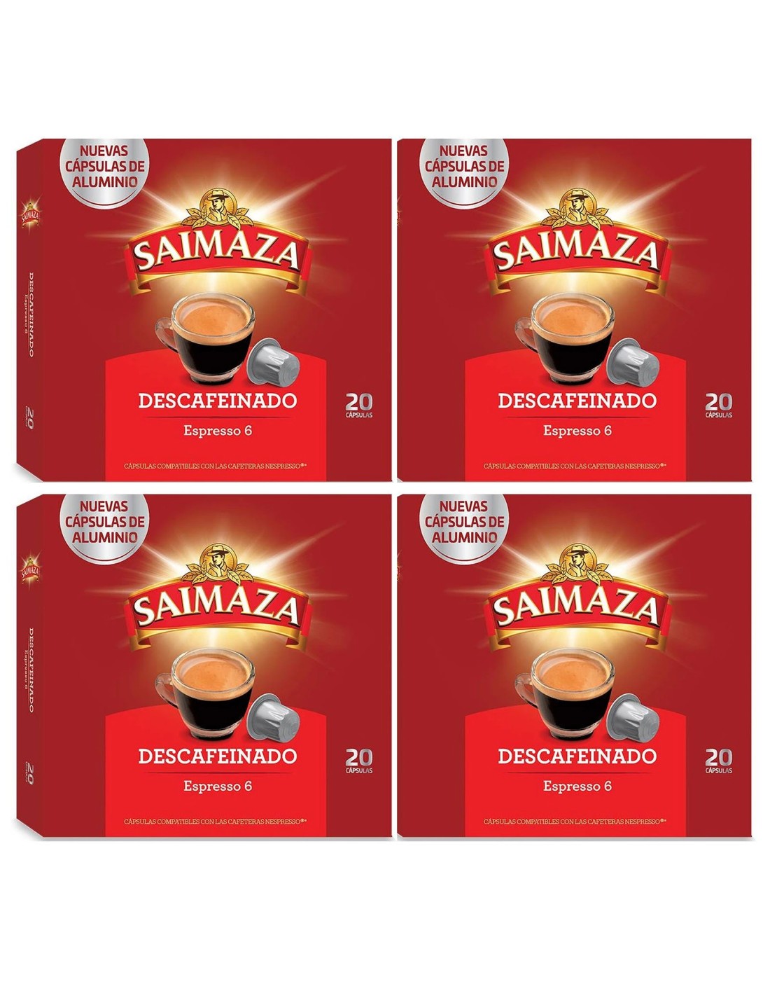 Descafeinado Saimaza, 80 cápsulas de aluminio compatibles con Nespresso