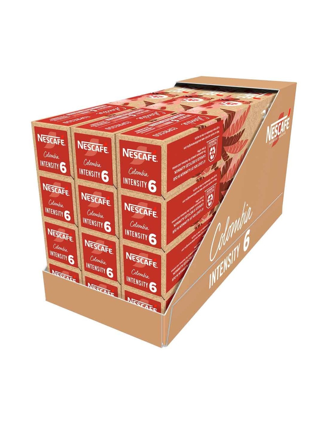 Descubre la riqueza y la pasión del café colombiano con nuestras cápsulas Colombia Nescafé. Cada caja contiene 120 cápsulas de aluminio, distribuidas en 12 tubos de 10 cápsulas cada uno, para que puedas disfrutar de la autenticidad del café colombiano en cada taza.