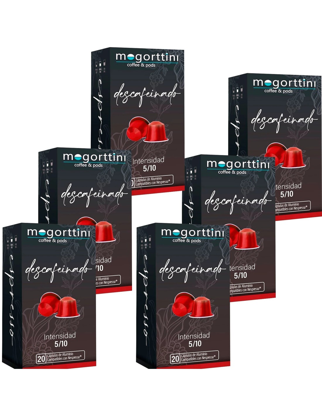 120 cápsulas de café descafeinado con las Mogorttini compatibles con Nespresso