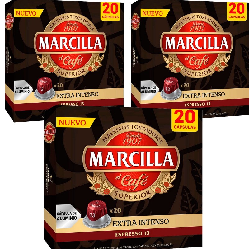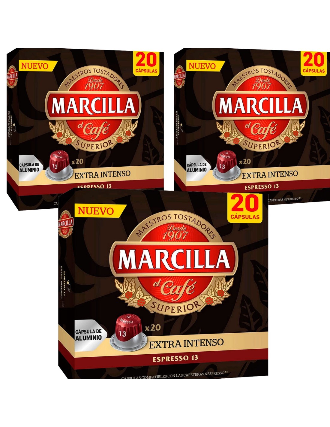 3 cajas de Extra Intenso Marcilla - 20 Cápsulas de Aluminio Compatibles con Nespresso
