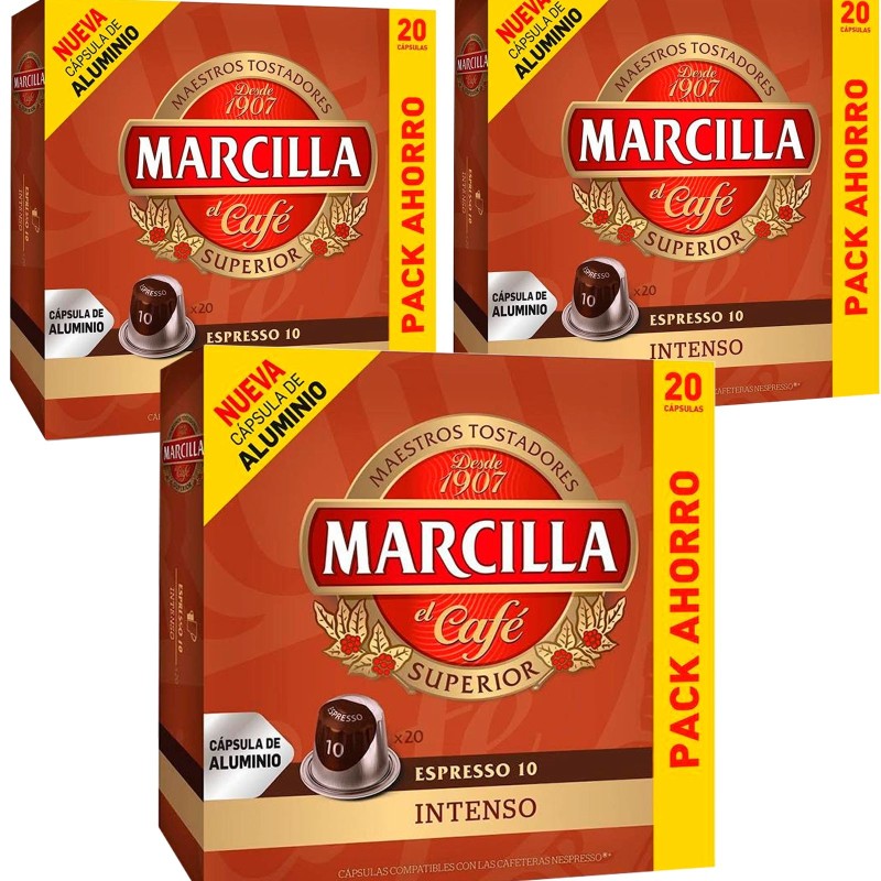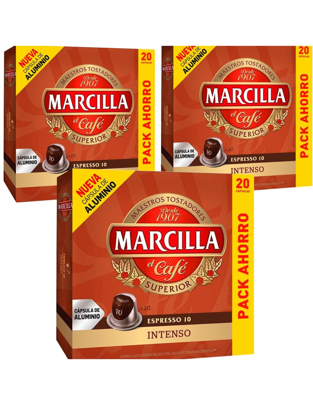 3 cajas Intenso Marcilla, 20 cápsulas de aluminio compatibles con Nespresso