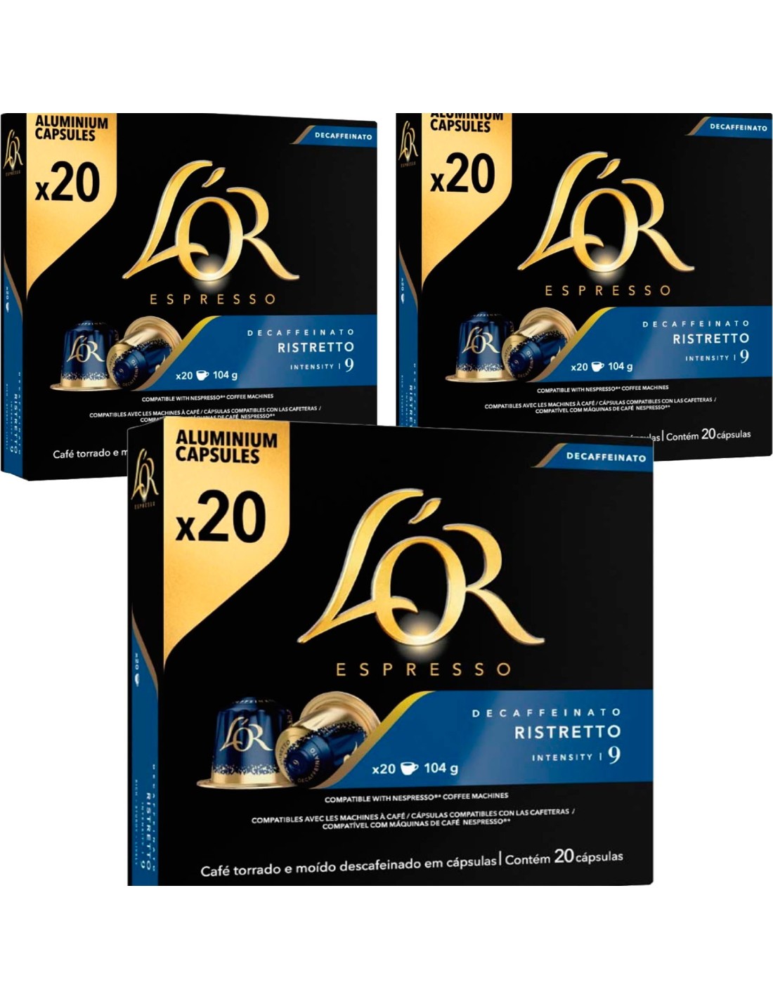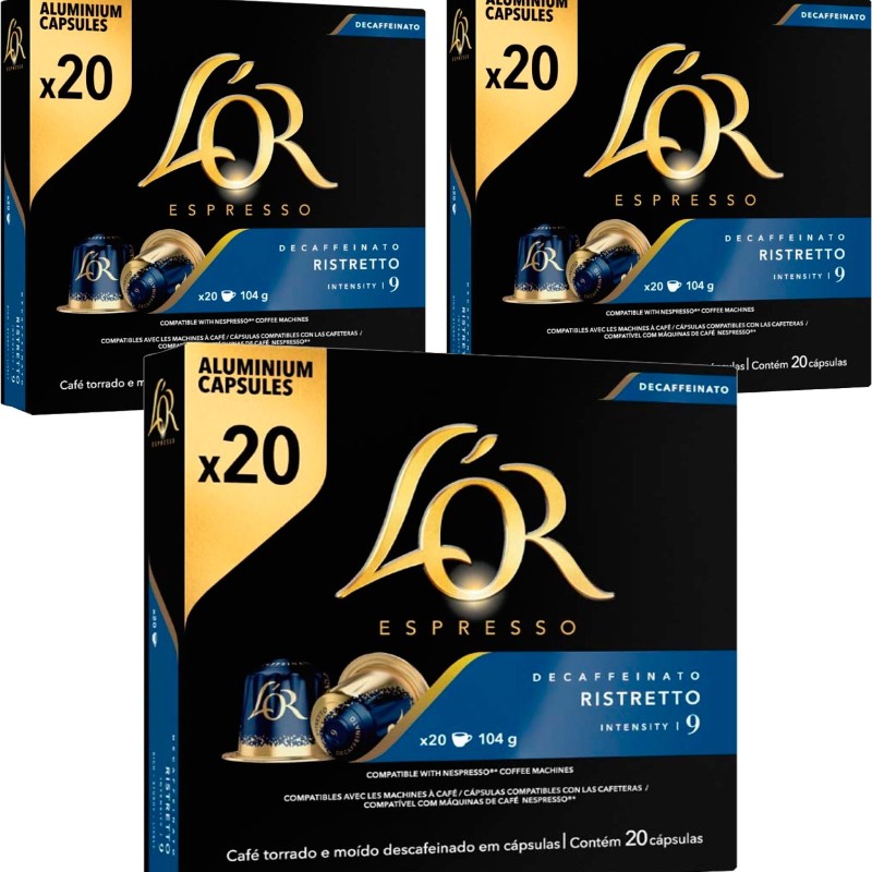 3 cajas de Ristretto Descafeinado L'OR 20 cápsulas compatibles Nespresso