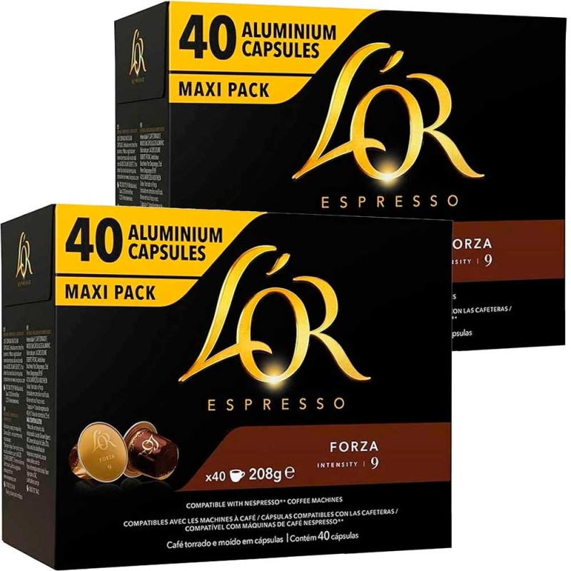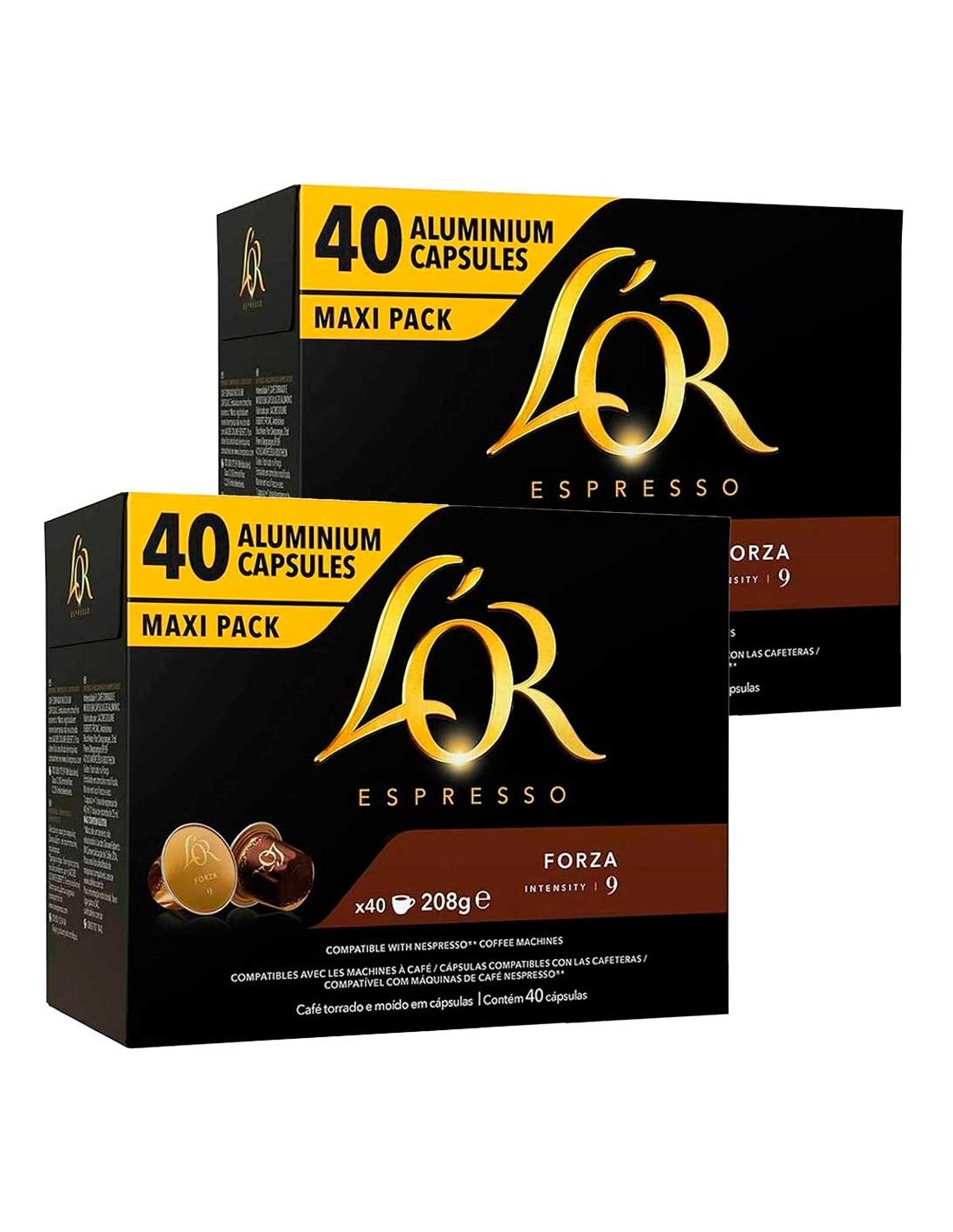 Forza L'or 2 cajas de 40 Cápsulas Maxi Pack: Tu elección perfecta para experimentar la intensidad y el placer en cada sorbo. Compatibles con Nespresso®, estas cápsulas te ofrecen un café excepcional para empezar el día con energía.