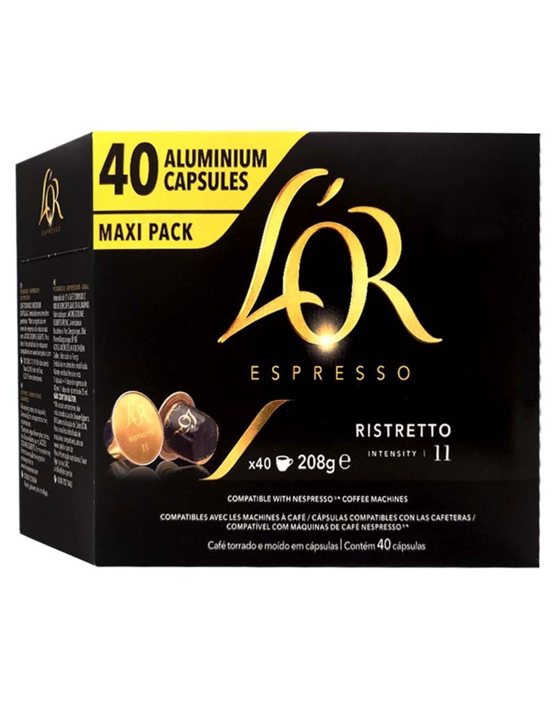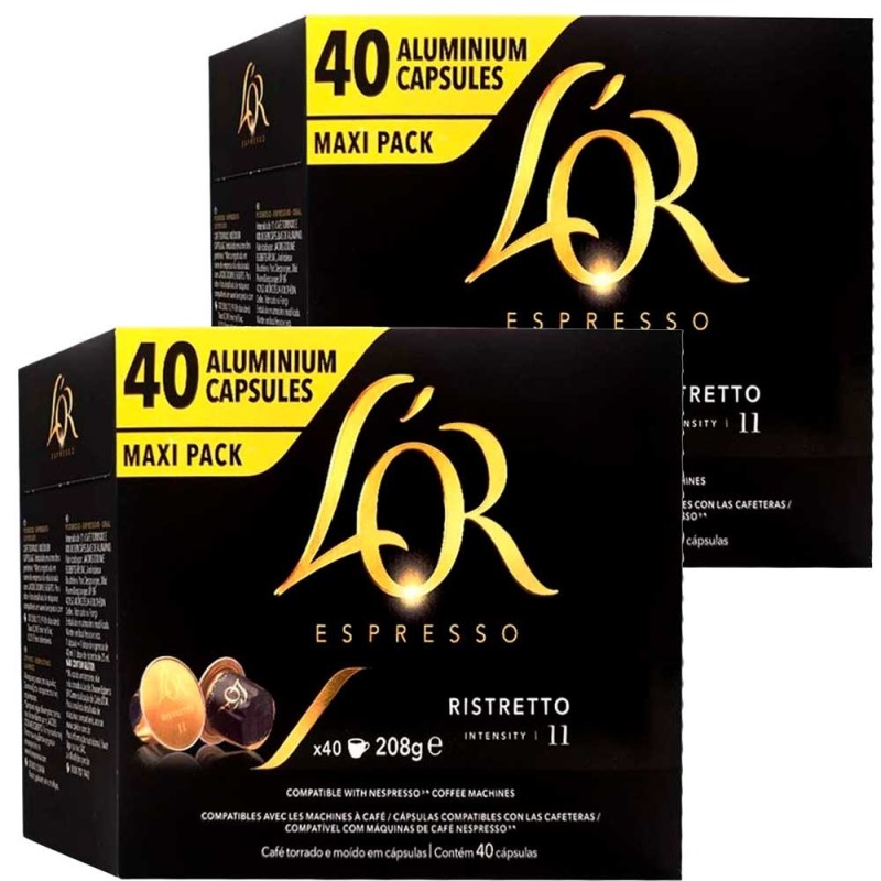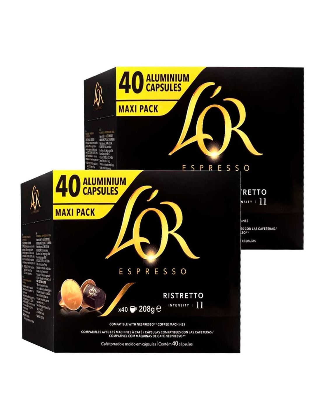 Descubre el intenso sabor y la calidad excepcional del café Ristretto L'OR en un práctico Maxi Pack de 2 cajas de 40 cápsulas compatibles con Nespresso. Este pack te ofrece una experiencia de café incomparable, con la comodidad de prepararlo en la comodidad de tu hogar. Cada cápsula contiene la cantidad perfecta de café molido, asegurando un sabor rico y aromático en cada taza.